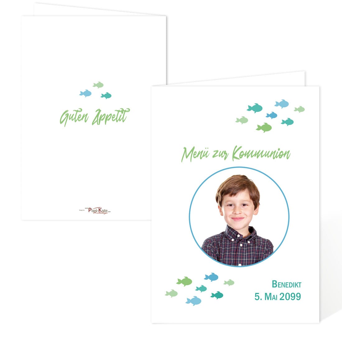 Menükarten zur Konfirmation oder Kommunion "Kleine Fische"