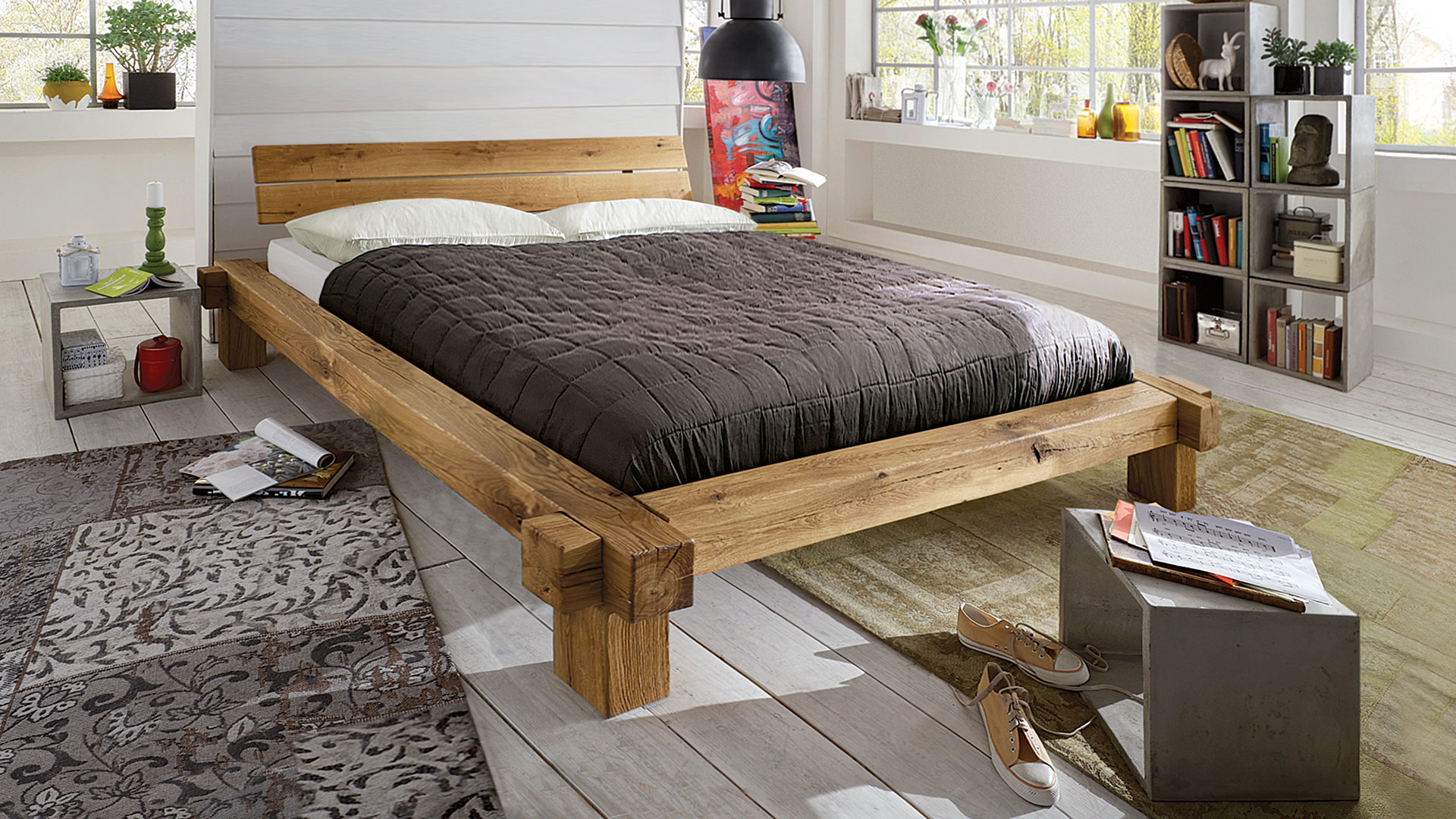 Balkenbett "Viga" - massiv Wildeiche